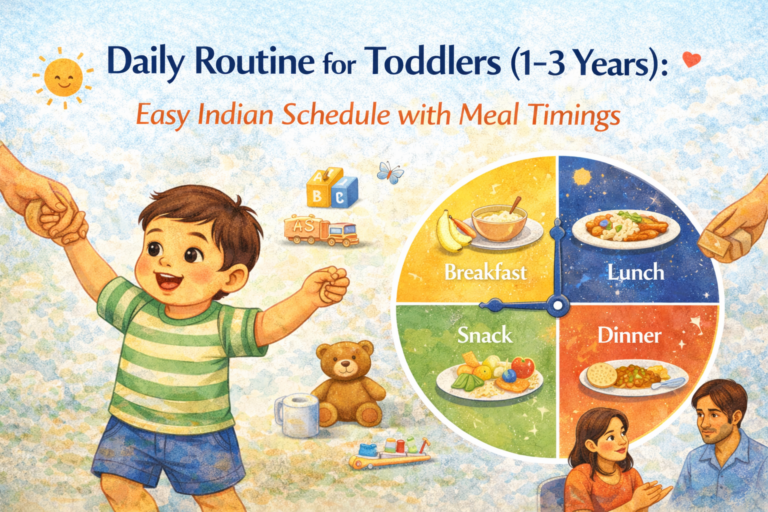 Categories Posted inin Child DevelopmentMilestones Daily Routine for Toddlers (1-3 Years): Easy Indian Schedule with Meal TimingsPosted byby Kavya MehetaFebruary 18, 20260 Comments3 min Share Continue Reading 3 min