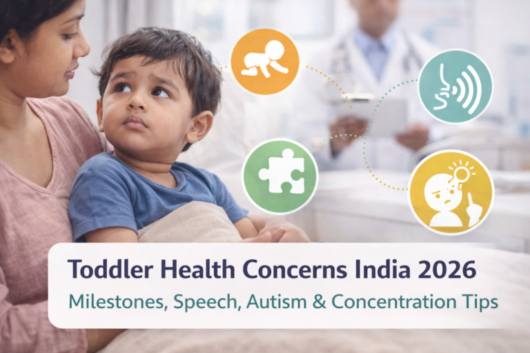 Categories Posted inin Child DevelopmentMilestones Toddler Health Concerns India 2026 – Milestones, Speech, Autism & Concentration TipsPosted byby Kavya MehetaFebruary 25, 20260 Comments3 min Share Continue Reading 3 min