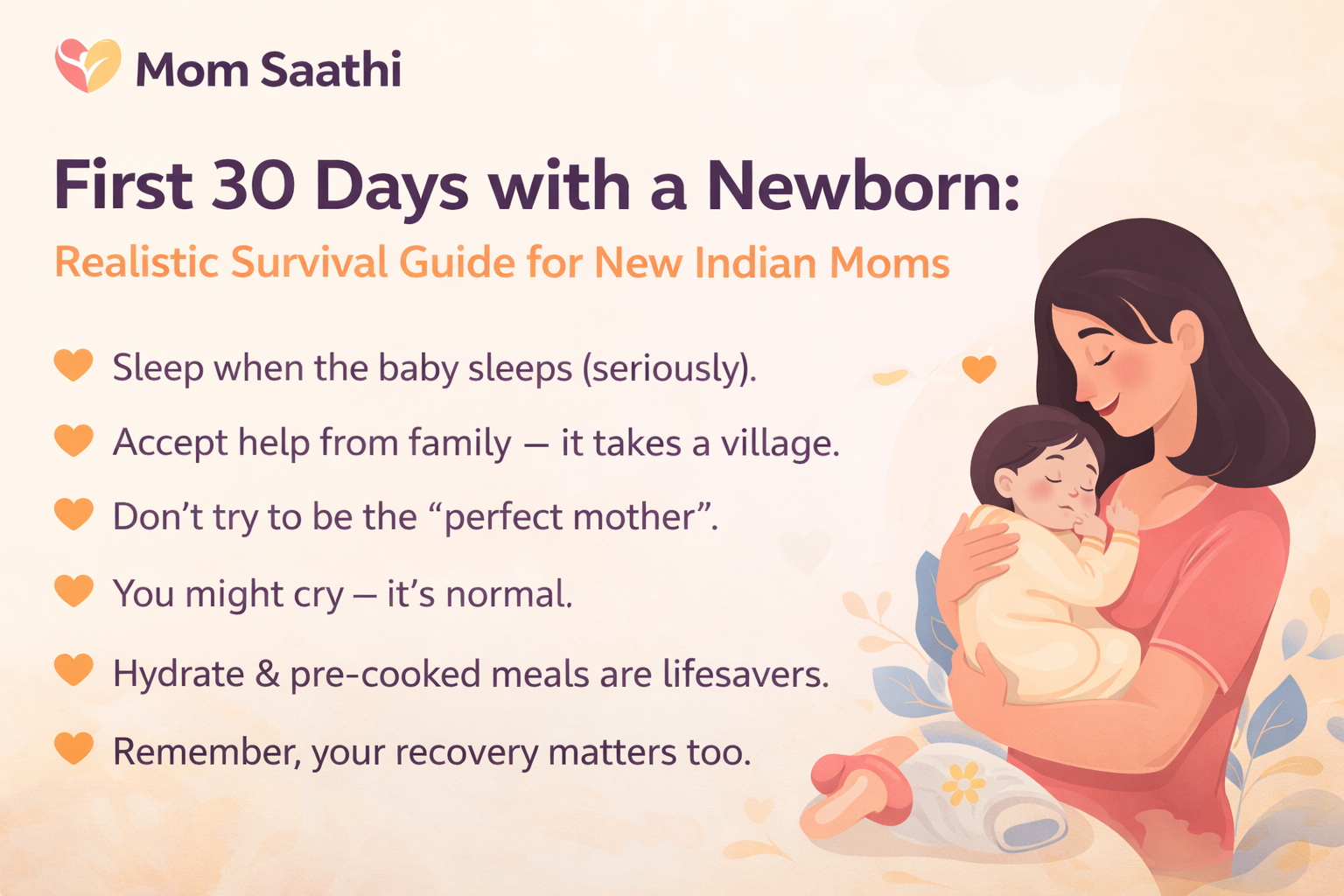 The first 30 days with a newborn are intense, beautiful, and often exhausting—especially as a new mom in India, where family involvement, traditional practices (like jaappa or the 40-day confinement), and modern medical advice all mix together. This realistic survival guide focuses on what actually happens, not idealized Instagram versions. It’s about surviving and thriving, prioritizing your recovery, the baby’s health, and your sanity amid well-meaning family advice, sleep deprivation, and hormonal shifts.