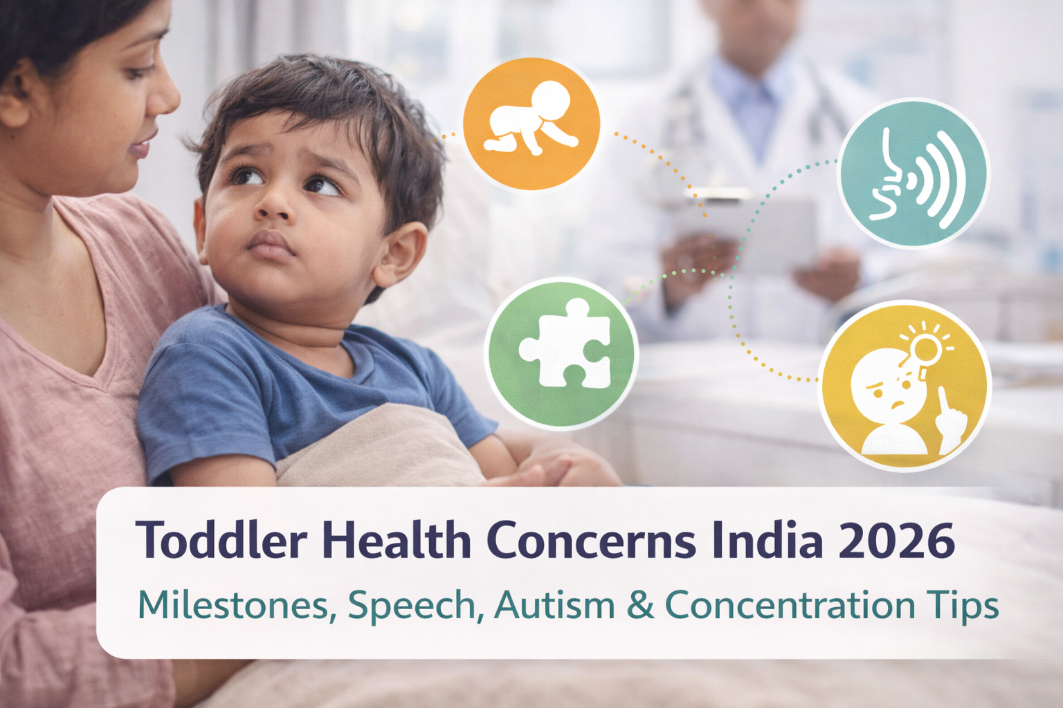 This guide covers the most searched toddler health concerns India — month-by-month milestones, fun 1-year activities, speech delay signs, early autism red flags, and simple ways to improve concentration — all with practical desi tips.